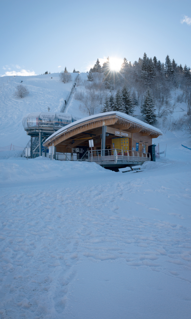 La station de Chamrousse prévoit la création d’un équipement de loisir de type luge sur rails, destiné à une utilisation hivernale et estivale. Le projet comprend une gare aval, une gare amont, un système de remonte-luge et une piste de luge. Il est complété par une passerelle de franchissement au-dessus d’une piste de ski existante. Le Luge Coaster de Chamrousse fait 640m de long, pour un dénivelé de 94m sur une pente moyenne de 15% et peut atteindre la vitesse maximum de 40 km/h.