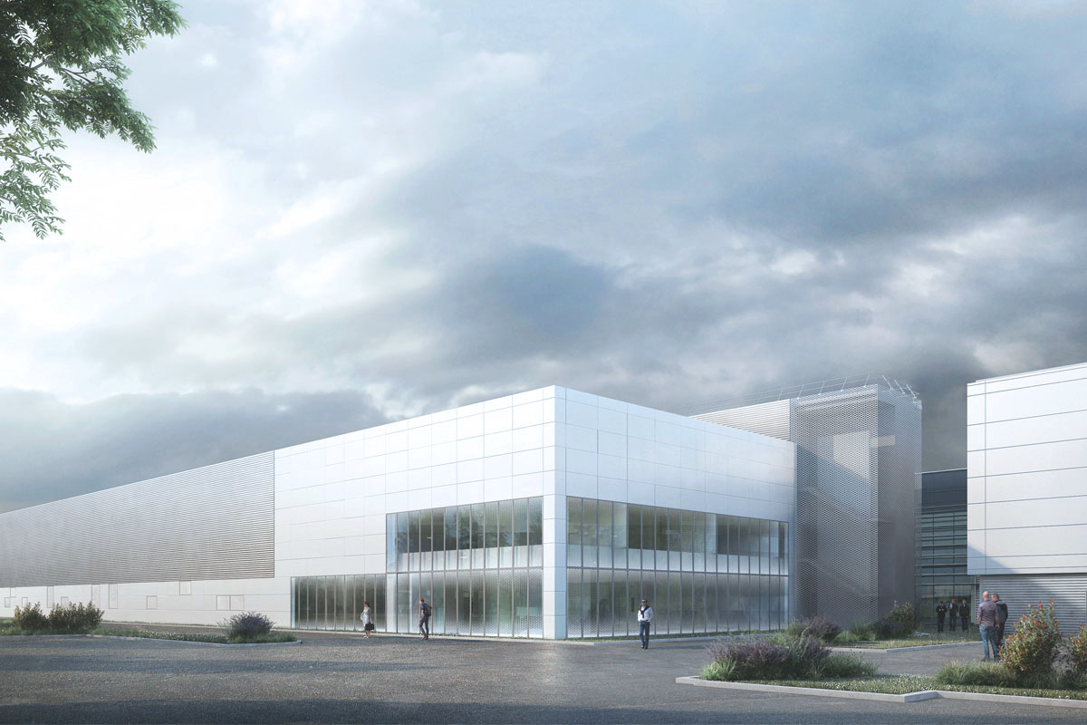 Le nouveau bâtiment de production, sur une longueur totale de 110 m, vient recomposer la partie industrielle et se détache de la partie administrative par une dent creuse indispensable à la conservation des éclairages naturels de l’unité de production existante.
