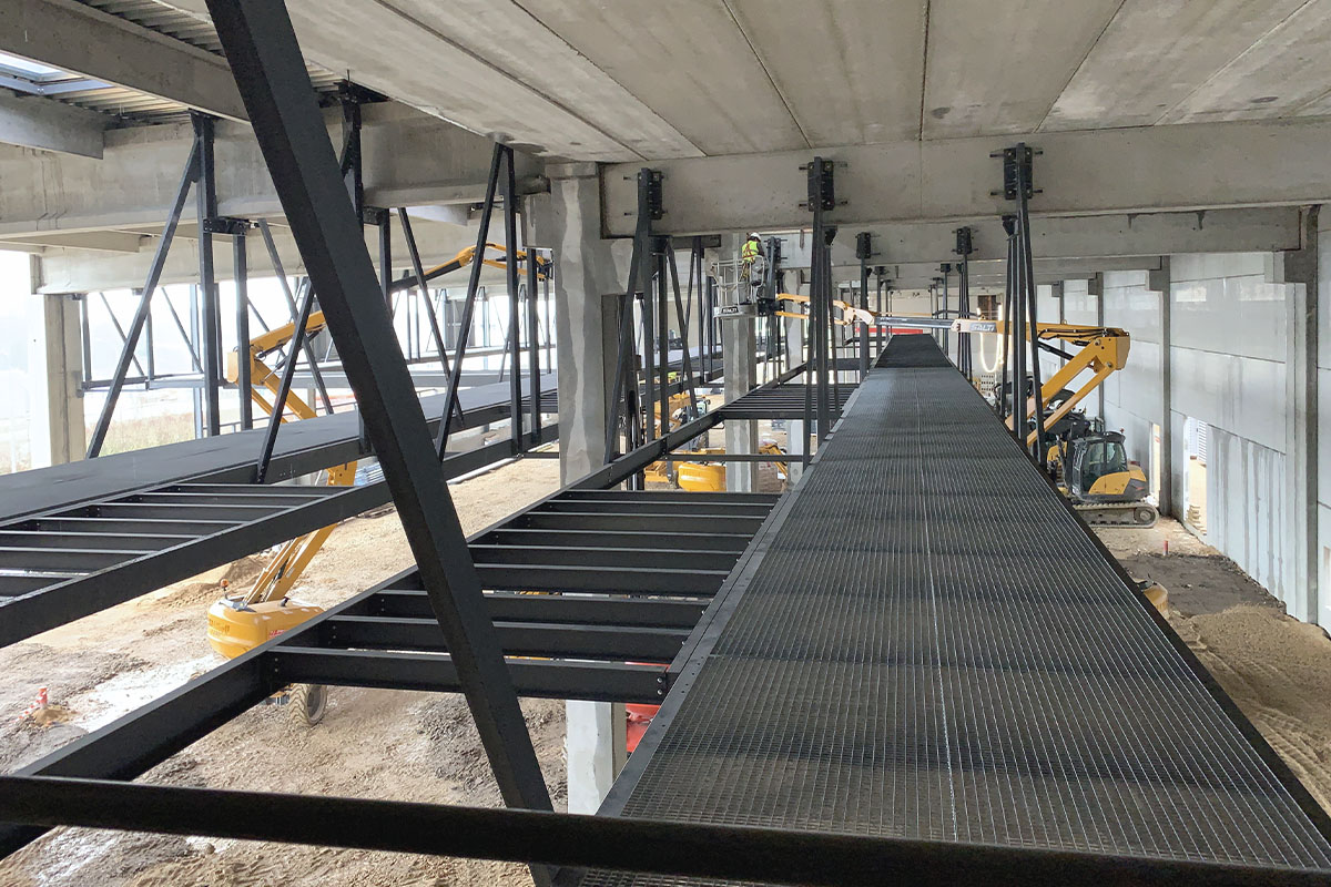 Le bâtiment existant, d’une surface conséquente de 28 455 m2, se construit autour d’une trame rigoureuse de 16 m par 12 m. Tout l’enjeu de cette extension est de respecter des codes architecturaux développés sur le bâtiment principal, tant en façade qu’au niveau de l’implantation générale.